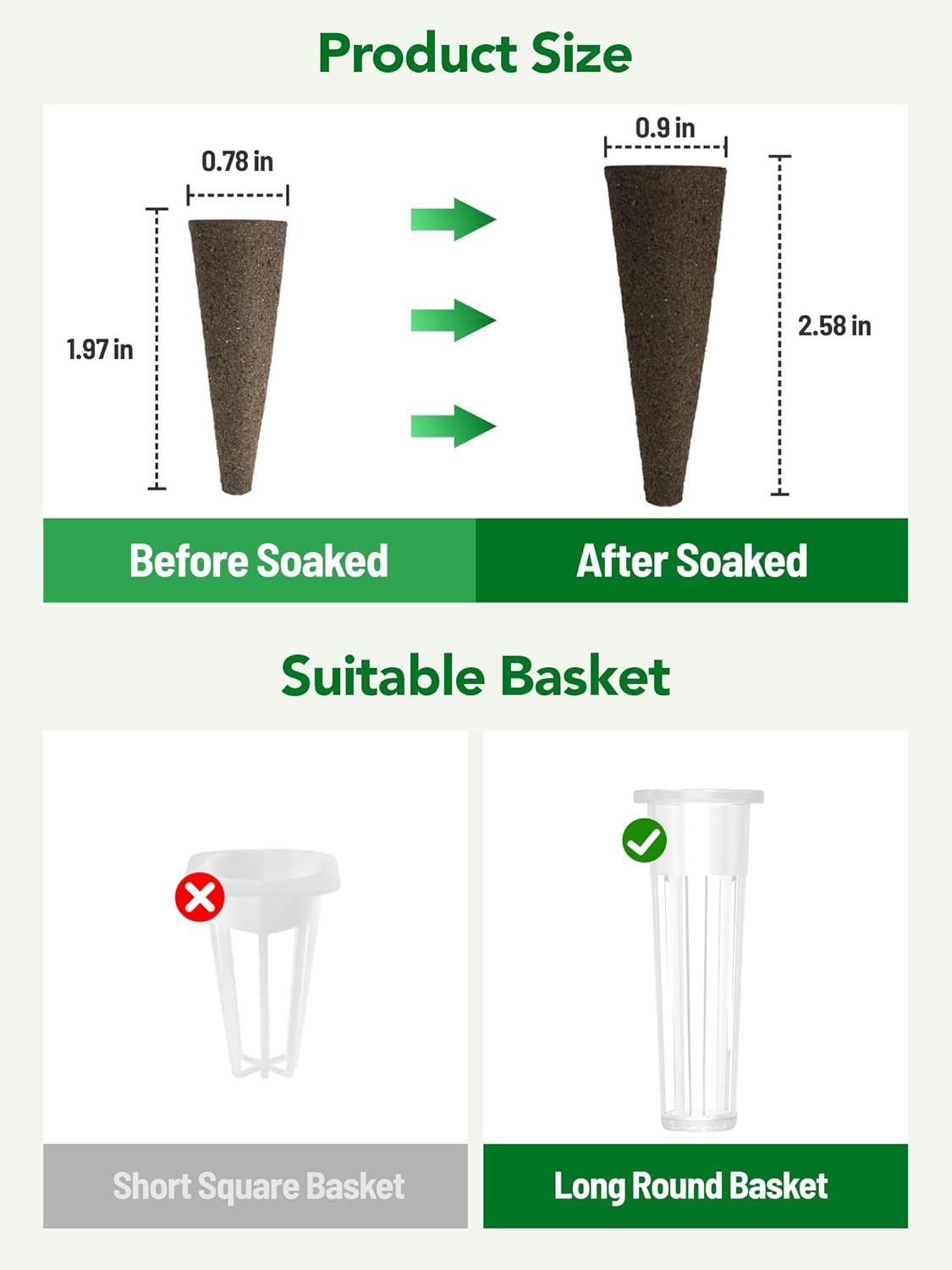 - High Compatibility: Our grow sponge size after soaking measures 0.9 inches in diameter and 2.58 inches in height, which is compatible with most hydroponics growing system like AeroGarden, Growell, Ahopegarden, and other brands. These hydroponic pods can also be used outdoors in soil to accelerate seed germination.