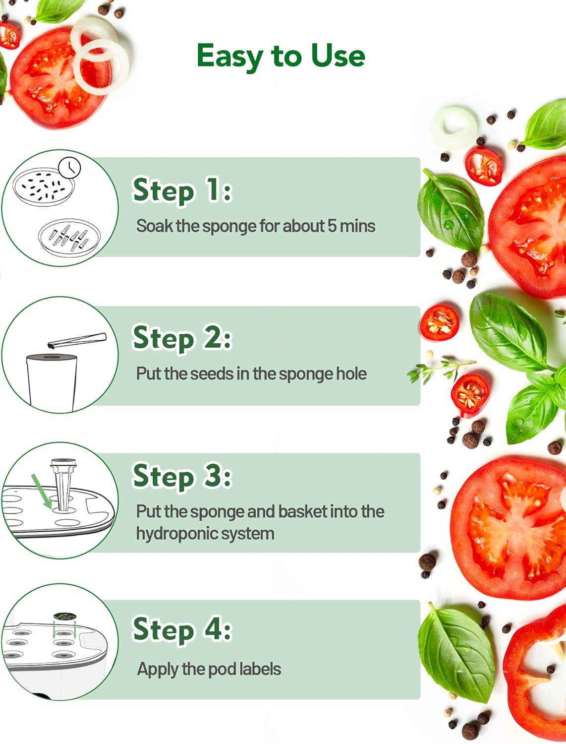 - Easy to Use: Before use, soak the sponge for about 5 minutes, then place the seeds inside and stick the pod label. Please store all unused replacement growing sponges in a dry place.