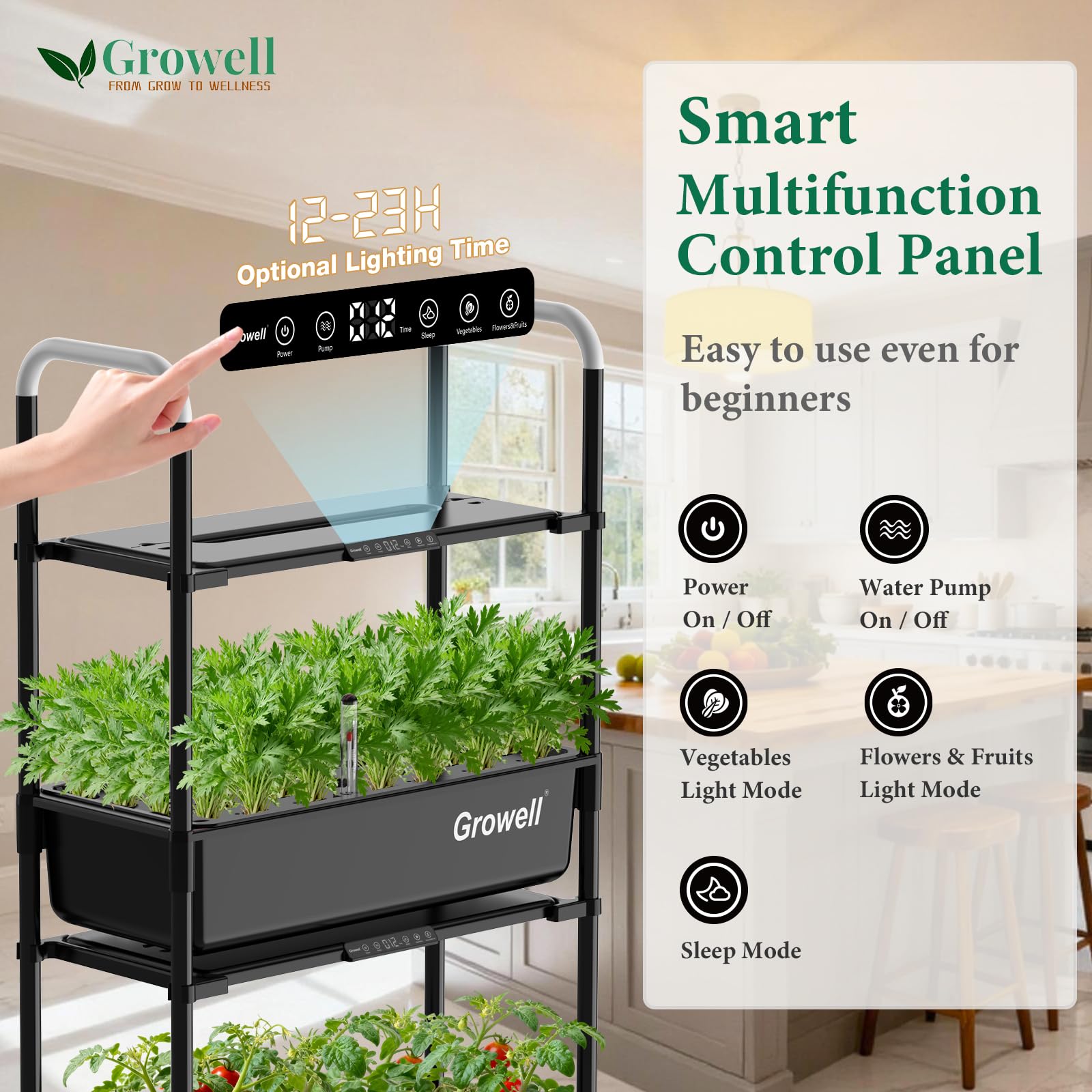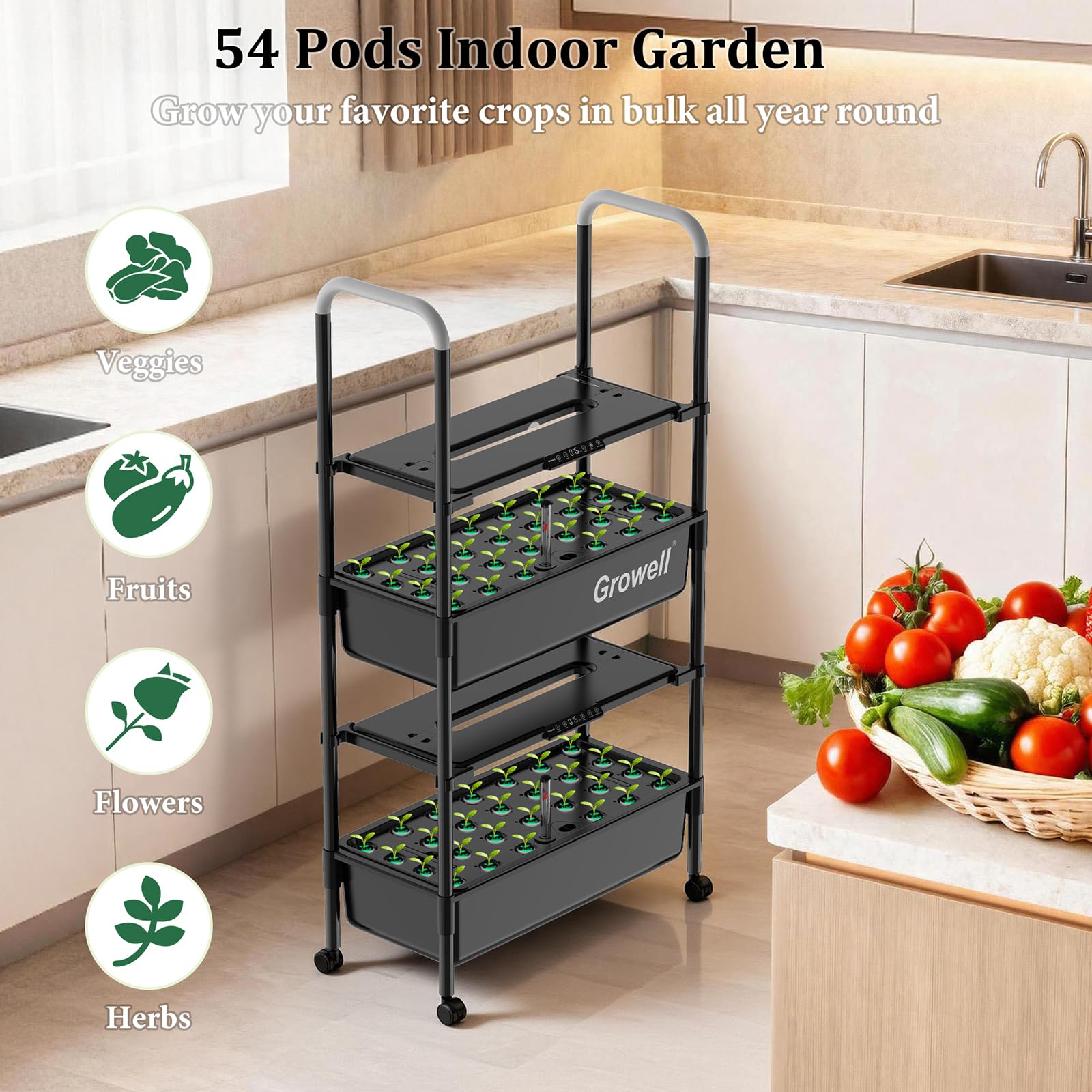 | Special Feature | ①2 Tier 54 Pods ②3X Faster Growth ③Auto Water Circulation ④2 Light Modes & 12-23H Adjustable Timer ⑤Dual 14L Large Water Tank ⑥Independent Control Each Tier ⑦Lockable Wheels Design ⑧Float Water Level Indicator ⑨Grow Light Height Adjustable ⑩All-in-One Grow Anything Kit See more |